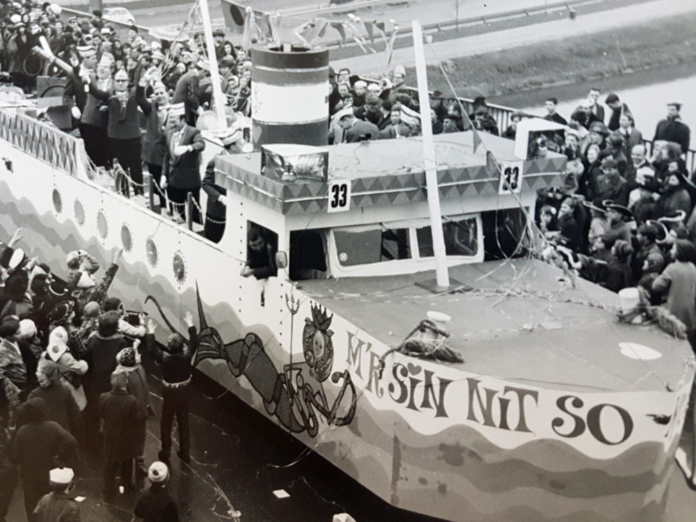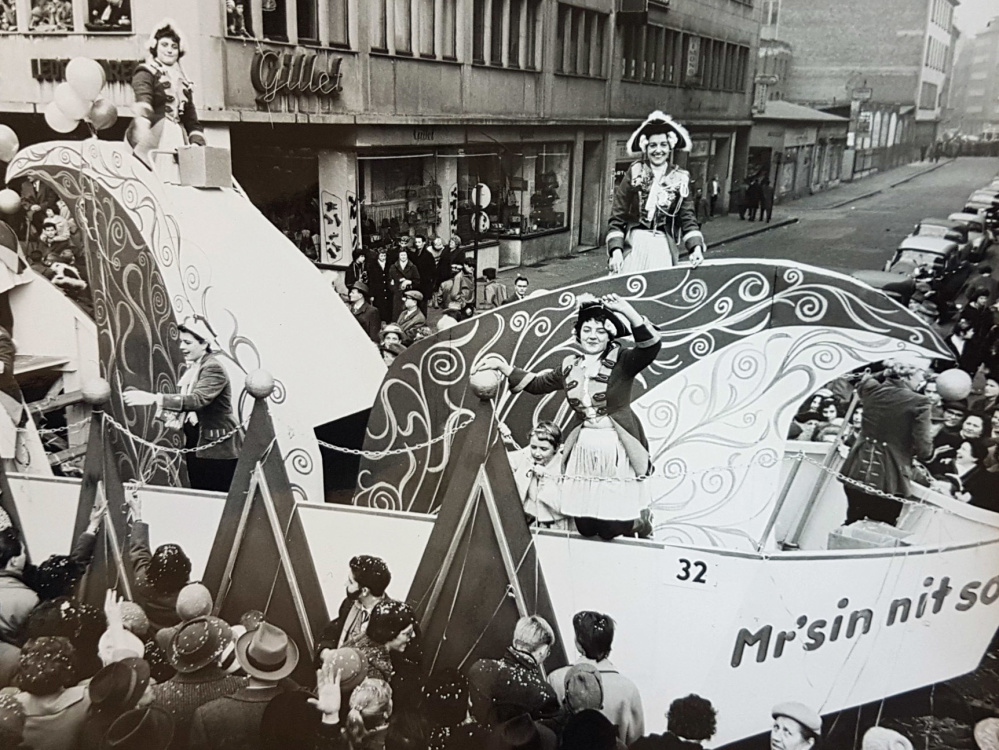 Historische Faasenachtsfotos: Umzugsschiff der M'r sin nit so (Archiv Volker Mildenberger)