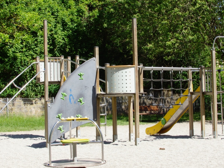 Kleinkindspielplatz mit Rutsche, Wippe, Wipptieren, Sandkasten