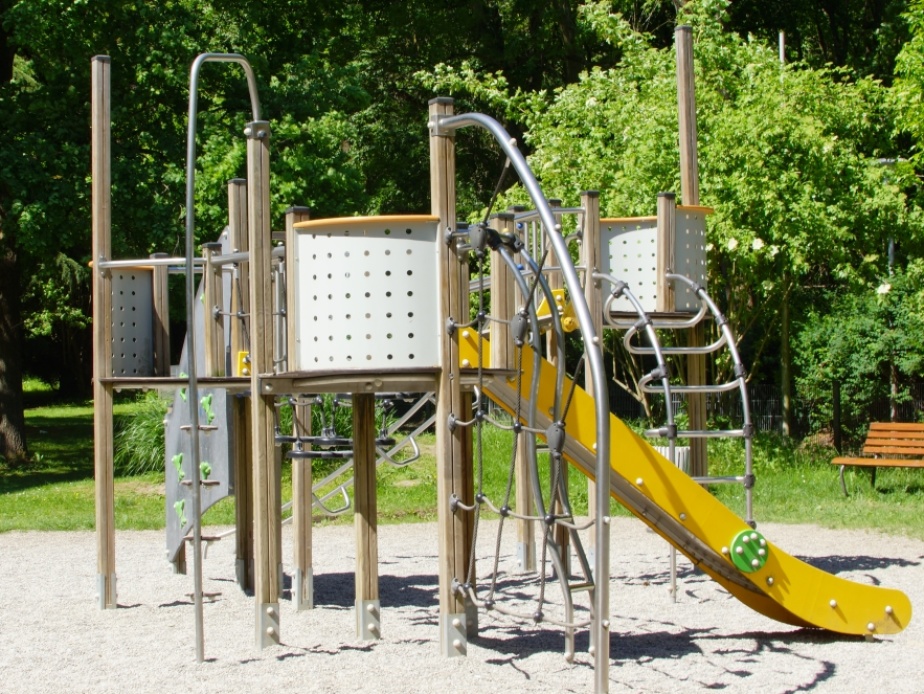 Der Spielplatz am Rosengarten bietet vielfältige Spielmöglichkeiten, in der ehemaligen Gullivers Welt lockt ein großzügiger Wasserspielplatz.