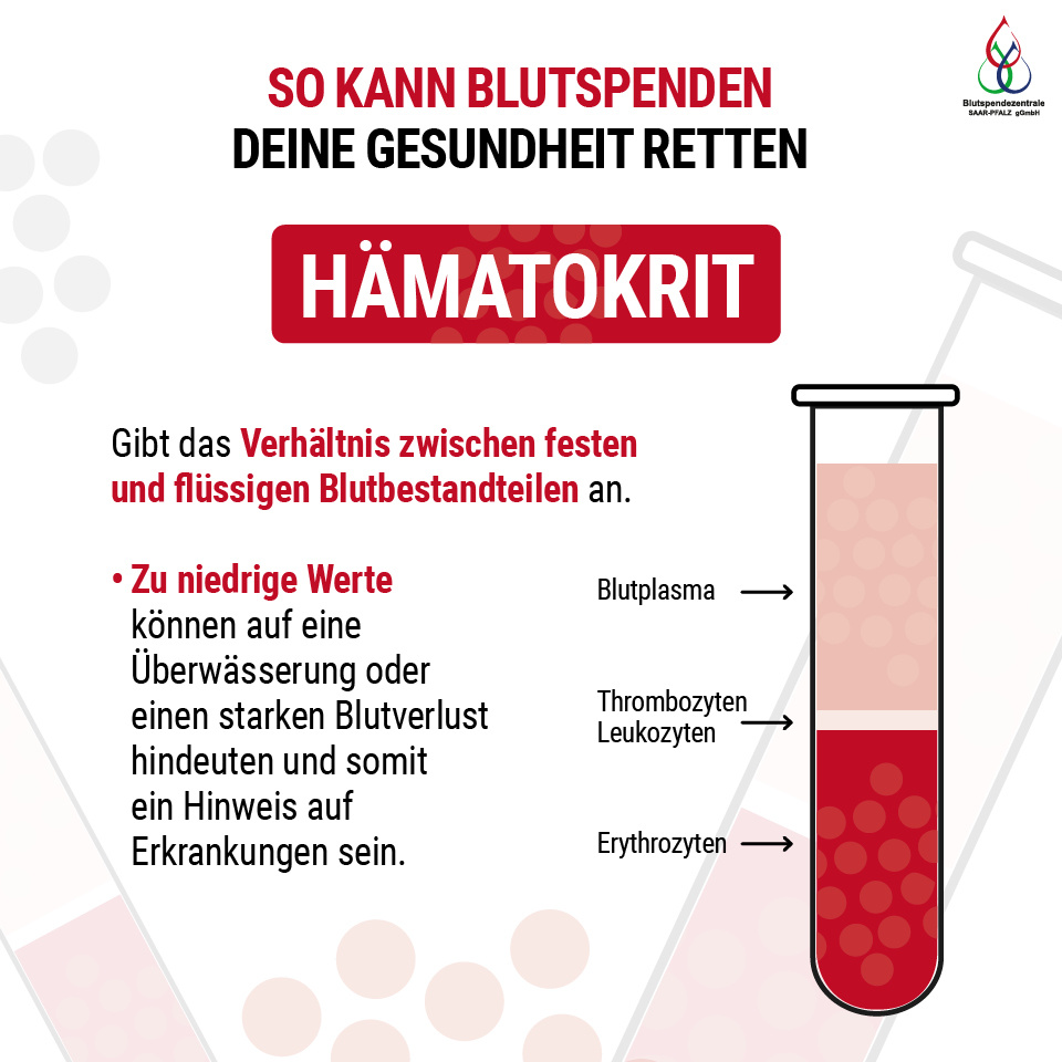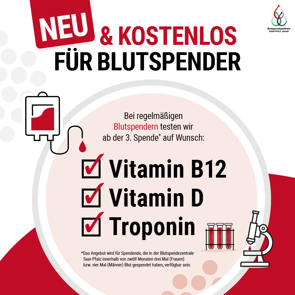 Die Blutspendezentrale bietet regelmäßigen Spenderinnen und Spender weitere Gesundheitstests, die in Praxen niedergelassener Ärzte meist kostenpflichtig sind. Das Angebot richtet sich an Männer, die mindestens vier Mal innerhalb von zwölf Monaten spenden und an Frauen, die mindestens drei Mal innerhalb von zwölf Monaten spenden.