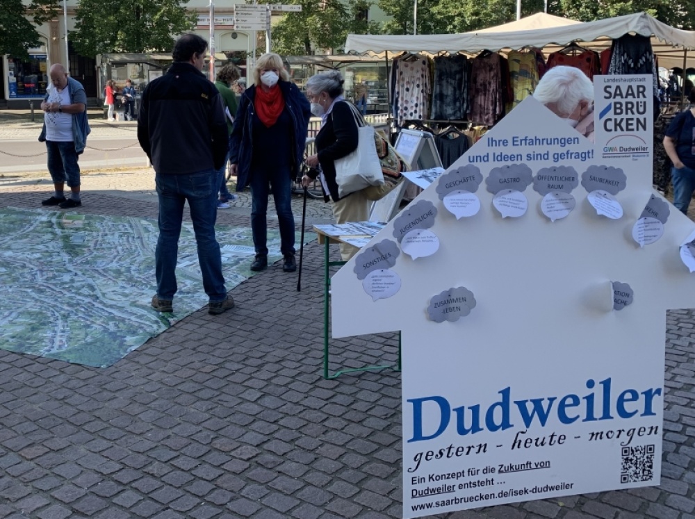 Offene Beteiligungsformate - wie der Stand auf dem Wochenmarkt und die Auftaktveranstaltung - richten sich an alle Dudweiler Bürgerinnen und Bürger.