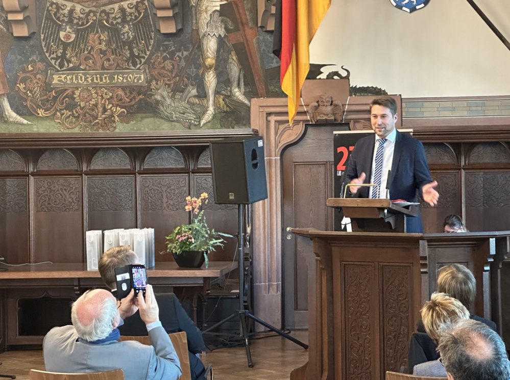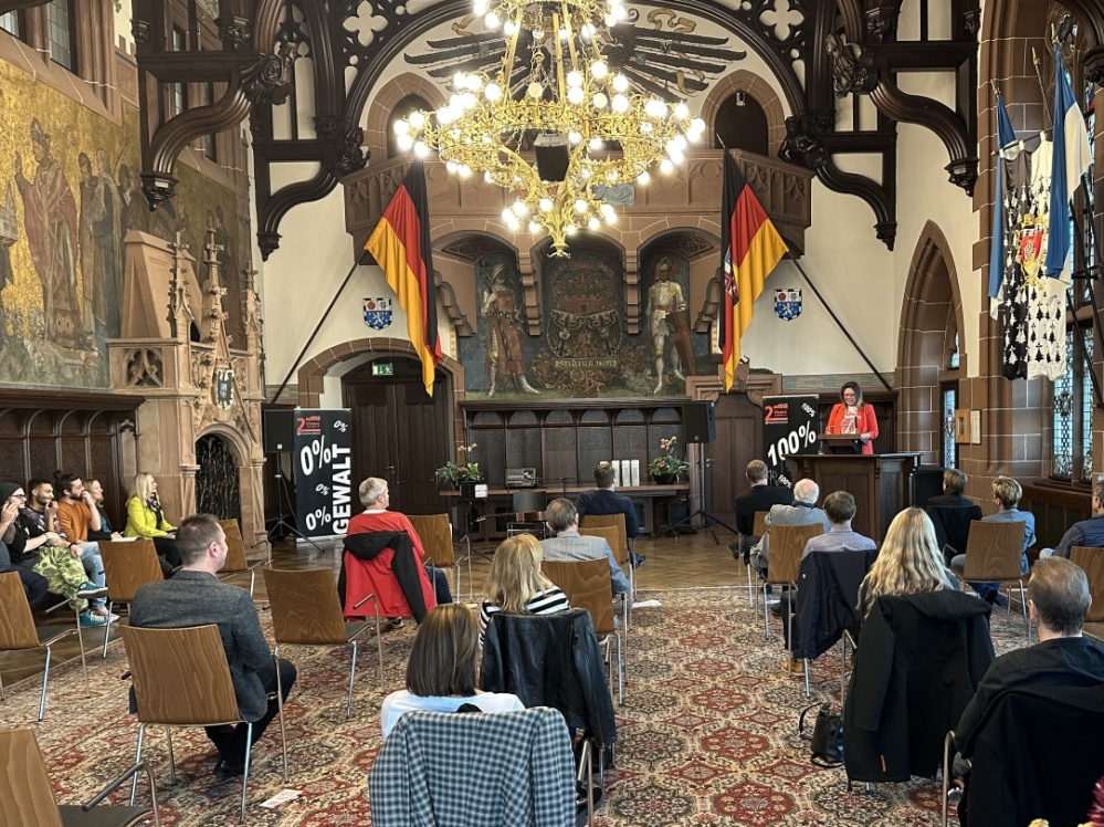 Herzlichen Glückwunsch! Oberbürgermeister Uwe Conradt hat am 2. November 2022 im Festsaal des Rathauses St. Johann Mitarbeiterinnen und Mitarbeiter aus den verschiedensten Bereichen der Stadtverwaltung und der Eigenbetriebe geehrt. Die Mitarbeiterinnen und Mitarbeiter feiern ihr 25-, 30- und 40- und 50-jähriges Dienstjubiläum.