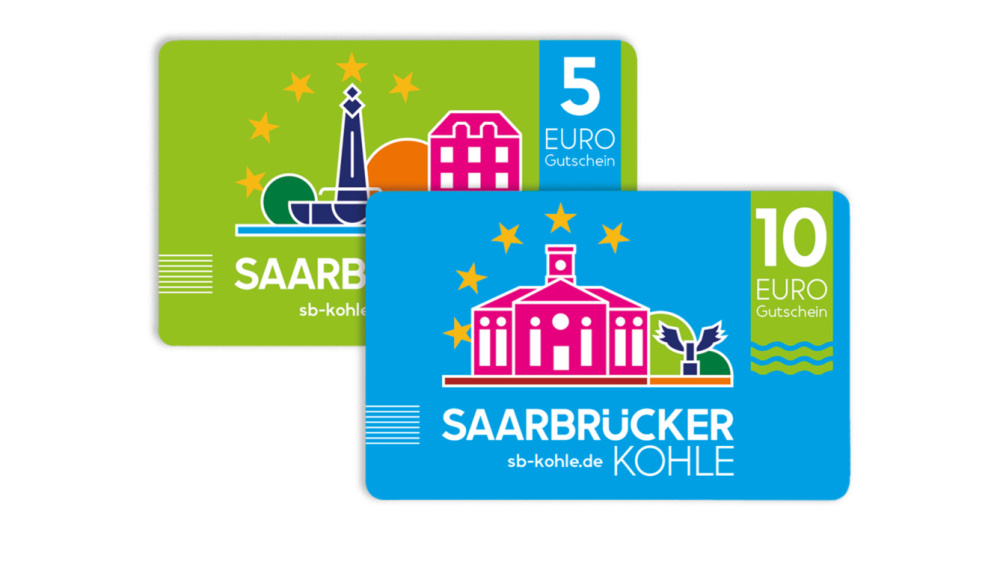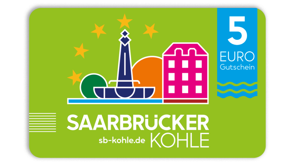 On peut acheter des bons « Saarbrücker Kohle » d’une valeur de 5 ou de 10 euros chacun, ce qui permet d’offrir une somme de son choix à 5 euros près. Les bons ont la taille d’une carte de crédit et sont fournis avec un emballage gratuit. Vous avez le choix entre une enveloppe-cadeau avec carte.