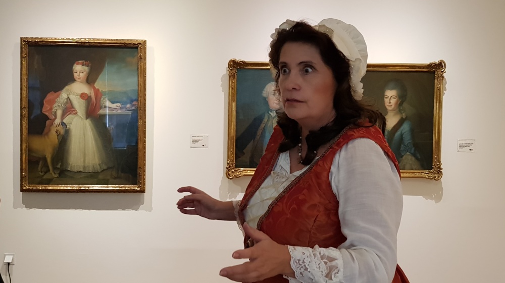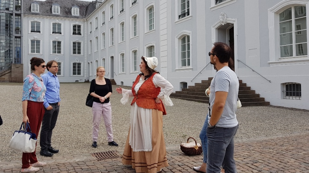 Henrietta führt die Gäste durch die alte Sammlung, zeigt Ihnen die Schlossanlage und den Ludwigsplatz und lässt die glanzvollen Zeiten wieder aufleben. Sie weiß von der Entwicklung der Stadt zu berichten aber auch wie die Damen geheime Botschaften an ihre Verehrer versandten. Sehr genau erinnert sie sich auch noch an die Flucht des Fürsten vor den herannahenden französischen Revolutionstruppen im Jahre 1793.